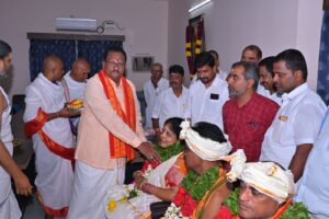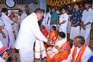 శ్రీశైలం దేవస్థానం వారు కాణిపాకం దేవస్థానం వరసిద్ధి వినాయక స్వామి బ్రహ్మోత్సవం సందర్బంగా పట్టువస్త్రాలు సమర్పణ. మల్లుగళ్ల విజయలక్ష్మి సుబ్బరాయుడు శ్రీశైలం బ్రమరాంబ మల్లికార్జున స్వామి దేవస్థానం ట్రస్టుబోర్డు మెంబర్, శ్రీశైలం సీతారామలక్ష్మణ హనుమత్ సమేత త్యాగరాజస్వామి దేవస్థానం ఎస్బీఐ కాలనీ నంద్యాల ఉడుమల్పురం దేవస్థానం ఆలయ చైర్మన్, ఆంధ్రప్రదేశ్ నాయీబ్రాహ్మణ సేవా సంఘం రాష్ట్ర ప్రధాన కార్యదర్శి.