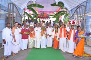 పట్టు వస్త్రాలను తీసుకువస్తున్న శ్రీశైల దేవస్థానం ఈవో బోర్డు సభ్యులు